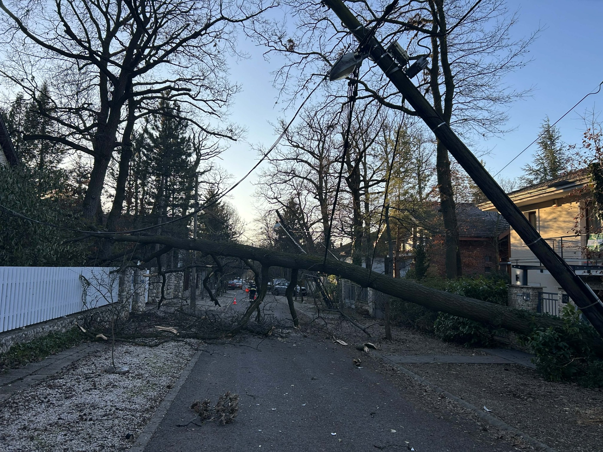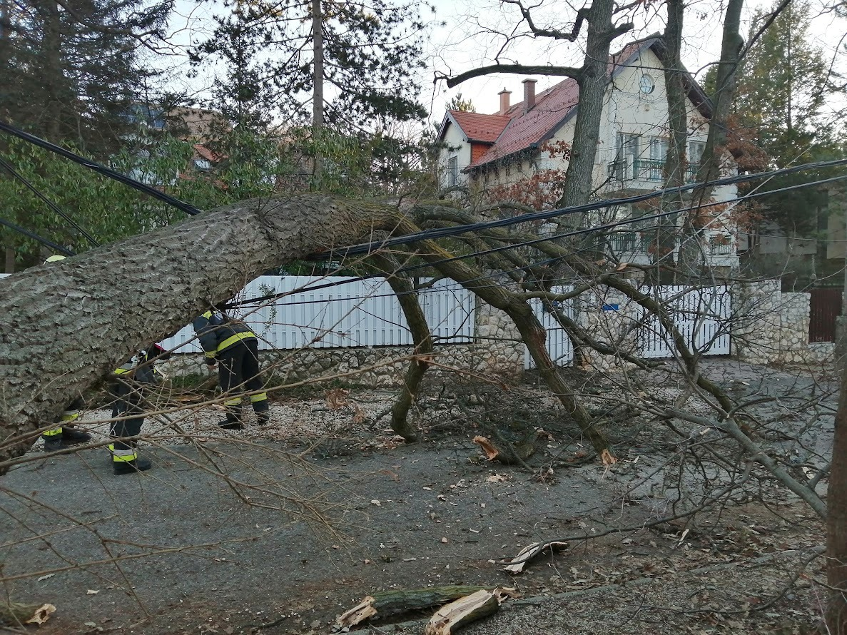 A vezetékek tartották meg azt a tölgyfát, ami a reggeli órákban dőlt ki a Homokóra utcában. A több tonnányi súlyt a villanyoszopok bírták a legkevésbé, azokból kettő is súlyosan megrongálódott, de mivel éppen nem járt arra senki, így szerencsére személyi sérülés nem történt. A fa eltávolítását mintegy 3 óra hossza alatt óvatosan tudták csak elvégezni a helyszínre riasztott önkéntes tűzoltóink, hogy minden további károkozást elkerüljenek. A szolgáltató szakemberei a helyreállítást azonnal megkezdték, így várhatóan délutánra már mindenhol lesz az utcában áram.