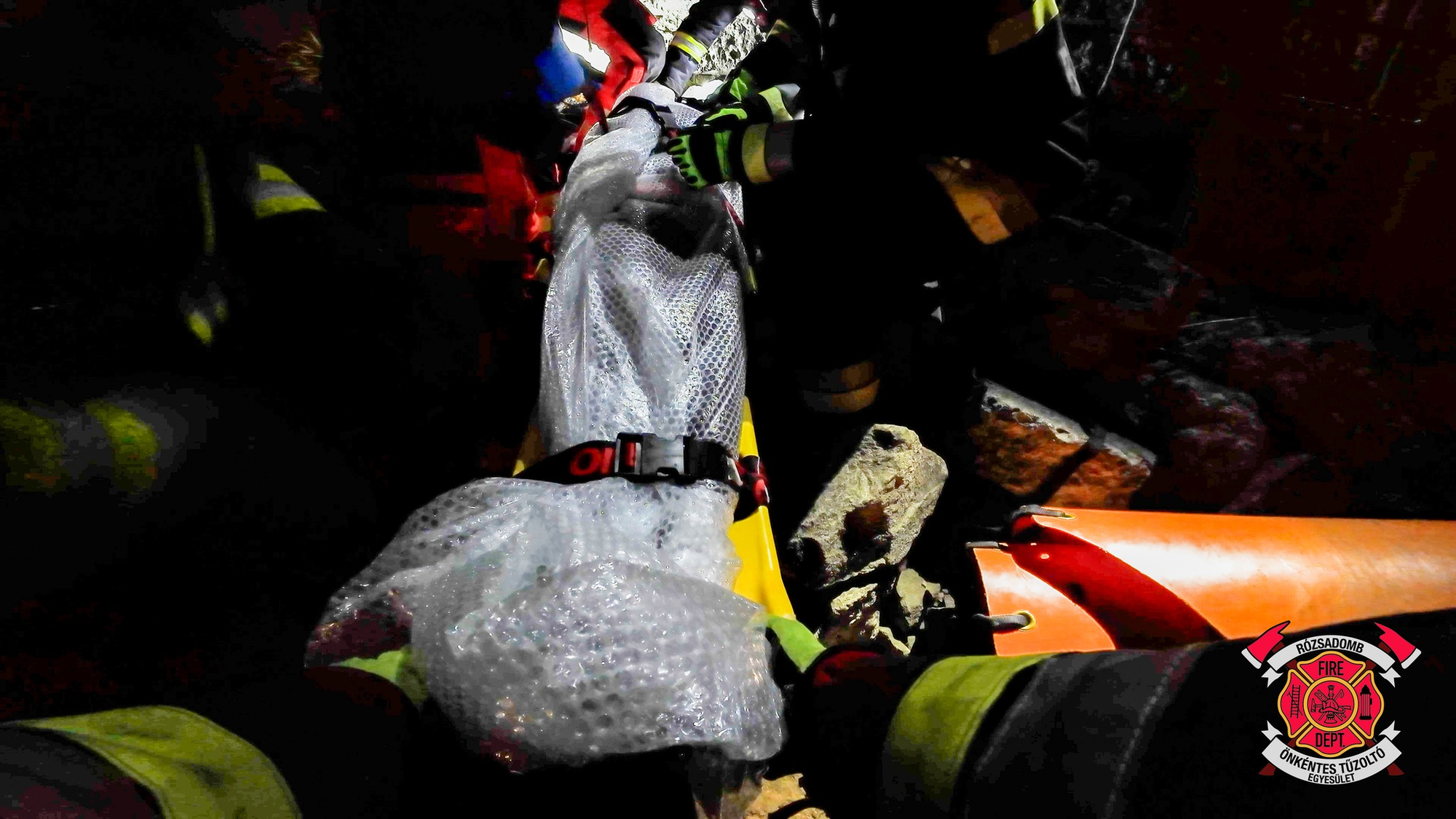 A sérülthöz csak létrán keresztül lehetett lejutni. Miután a mentők stabilizálták a sérültet, egy speciális hordágy és kötelek segítségével került kiemelésre, és a helyszíni további ellátását követően súlyos sérülésekkel kórházba szállították.