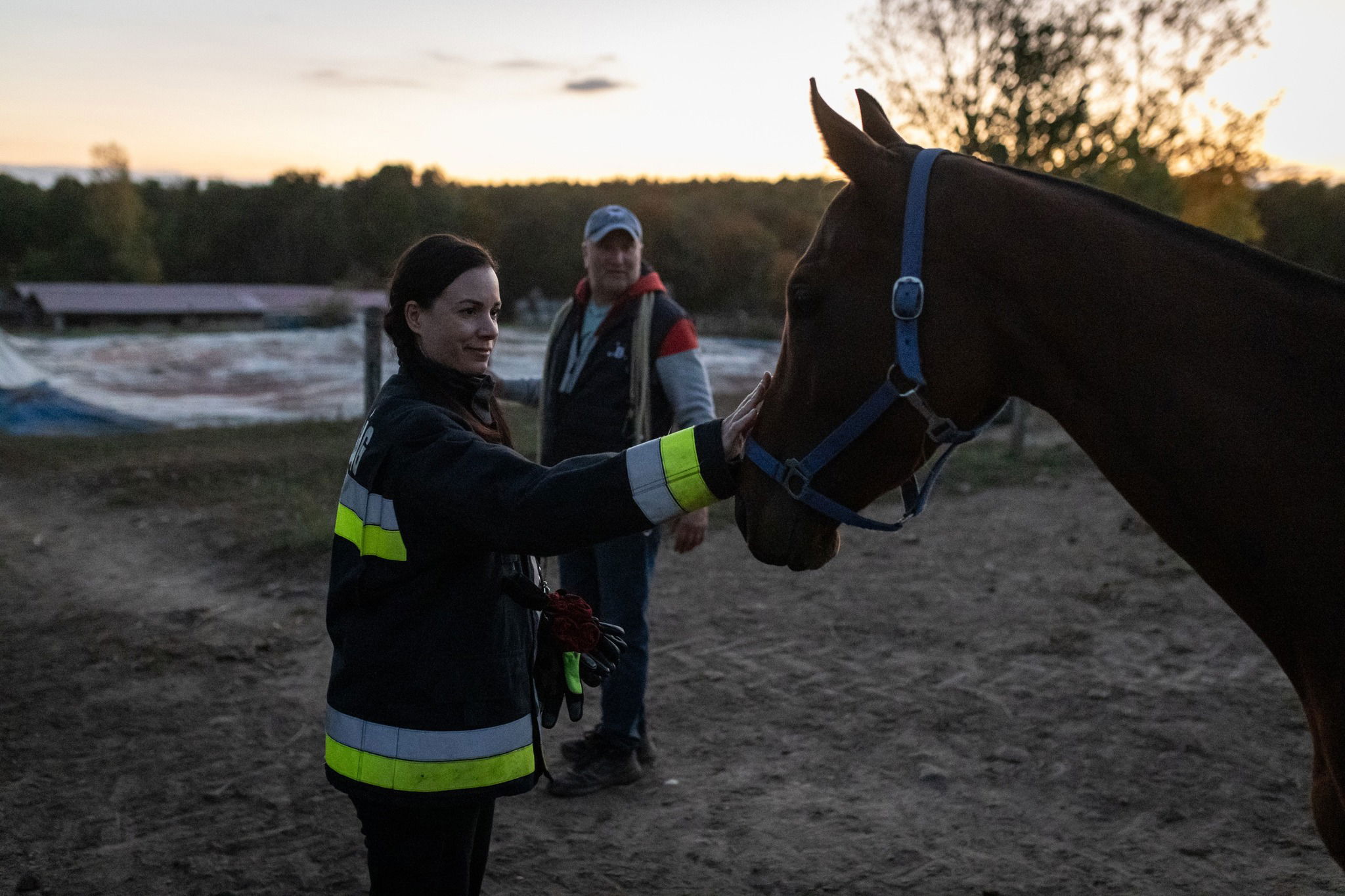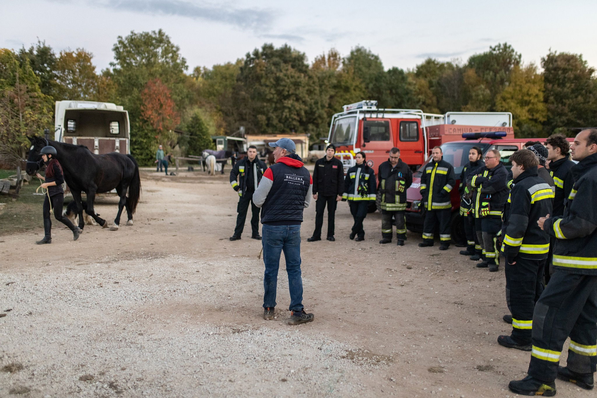 A gyakorlati foglalkozás keretein belül az önkénteseknek lehetőségük nyílt kipróbálni a lovak vezetését és megtanulni a velük való helyes bánásmódot. Részletesen megismertük a helyes eljárást és a legbiztonságosabb evakuációs útvonalakat tűzeset, baleset vagy egyéb vészhelyzet esetén. Ezen speciális ismeretek birtokában jelentősen növelhető a beavatkozás biztonsága ebben a nem mindennapi környezetben.