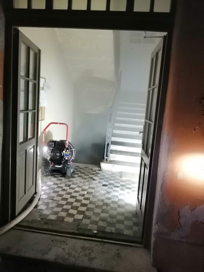 Tűz keletkezett egy többszintes társasház alagsorában pénteken este. A tűzesethez az I. és XI. kerületi hivatásos, valamint egyesületünk önkéntes tűzoltóit riasztották. Az elsőnek kiérkező újbudai egységek már a pinceszint abalakain kitörő lángokat, és sűrű füstöt tapasztaltak. A tűz oltásával egy időben a lakásokból két lakó légzőálarcban, egy személy kívülről létrakosárban került kimentésre, további egy fő pedig az erkélyen keresztül saját maga el tudta hagyni a lakását. A tűzben nagy mennyiségű faanyag és bútorok égtek, melyeknek a teljes oltása csak kipakolással volt lehetséges. A végleges oltás mintegy három órát vett igénybe, az épület szellőztetéséhez ventillátort használtunk. A mentők megállapítása szerint szerencsére senki nem sérült meg.
